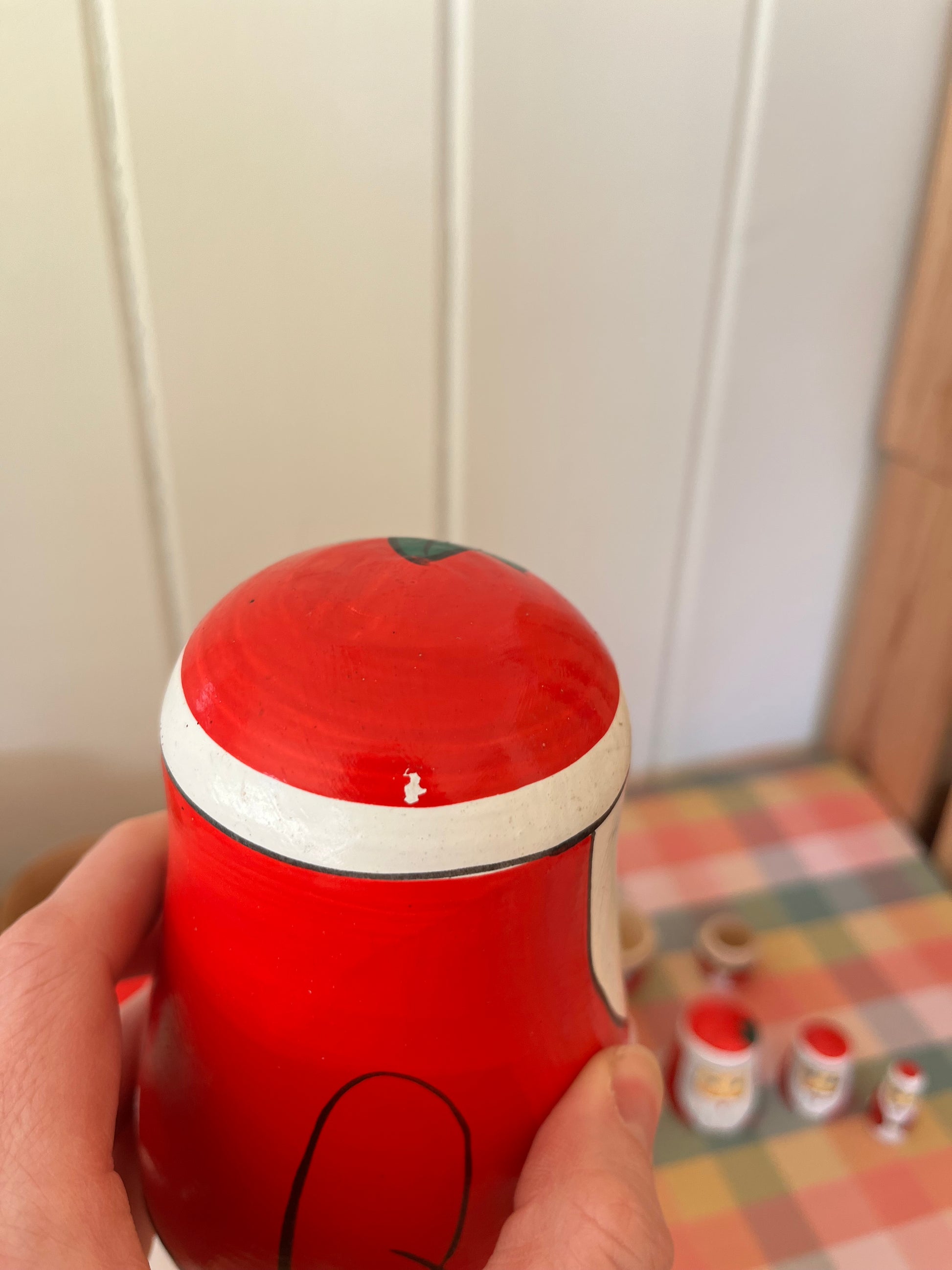 Nearly all of our Santa Matryoshka dolls are 5 pieces so we were thrilled to stumble across a bigger one containing 7 pieces.