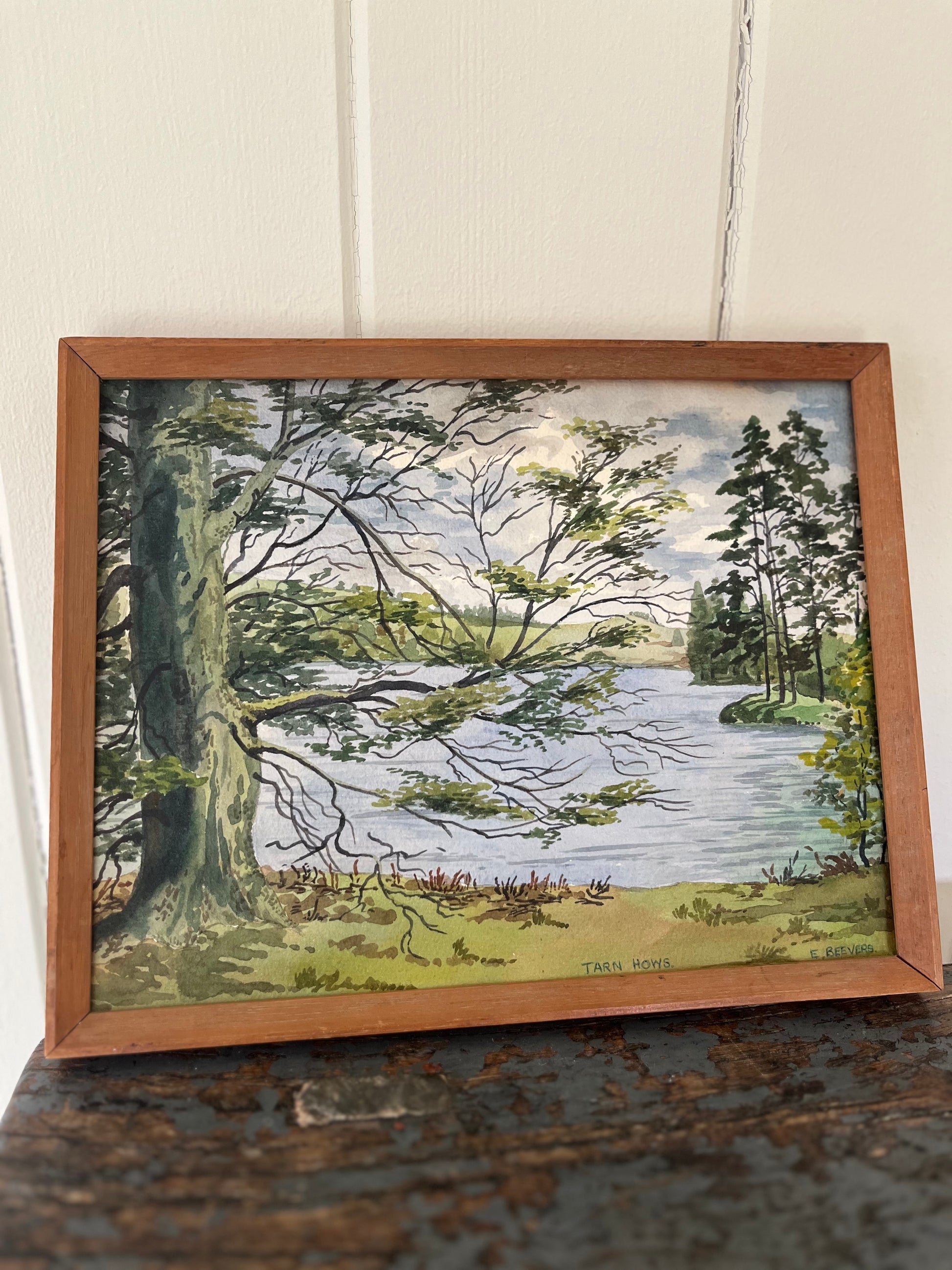Beautiful framed watercolour of Tarn Hows in the Lake District.