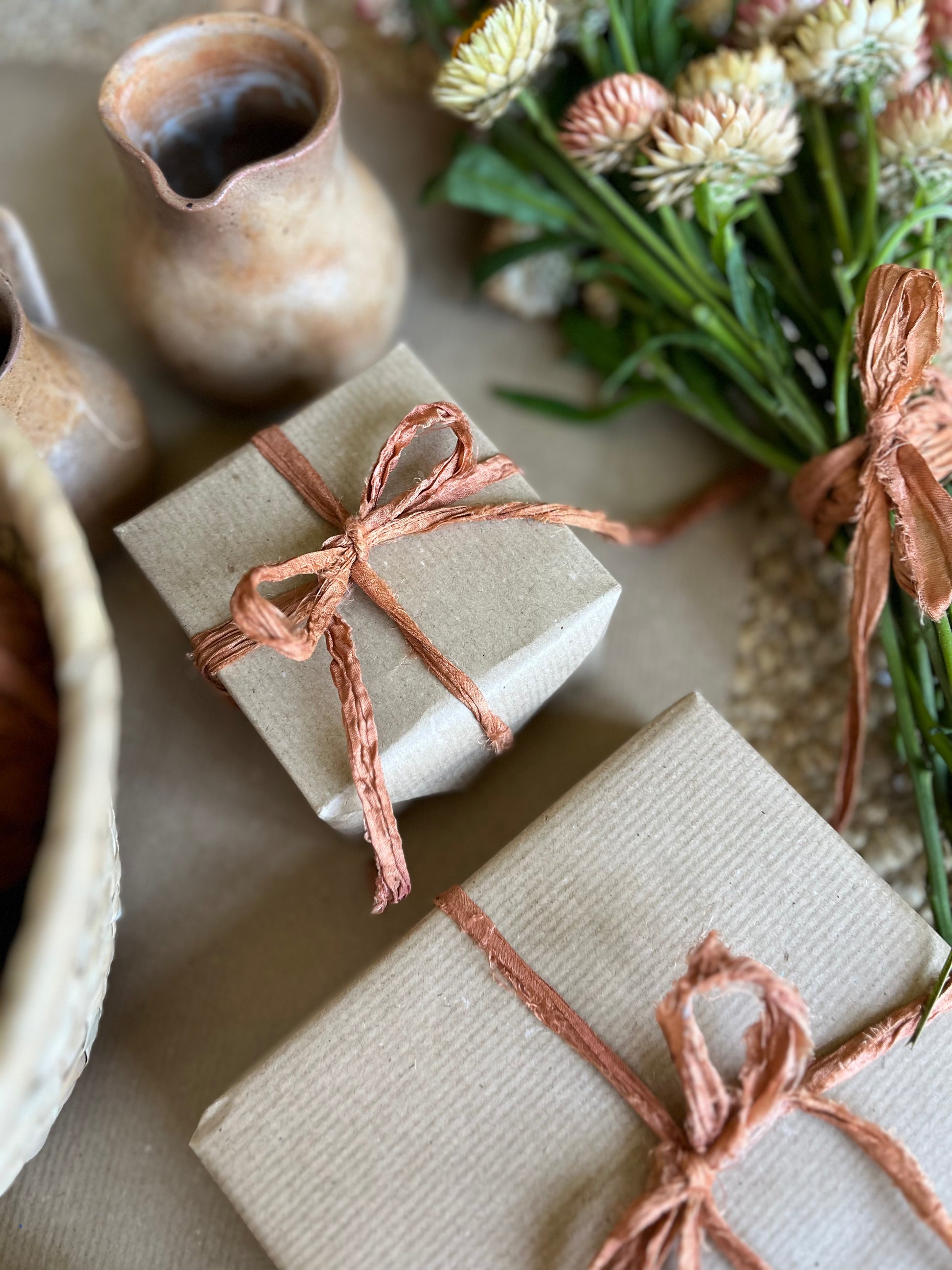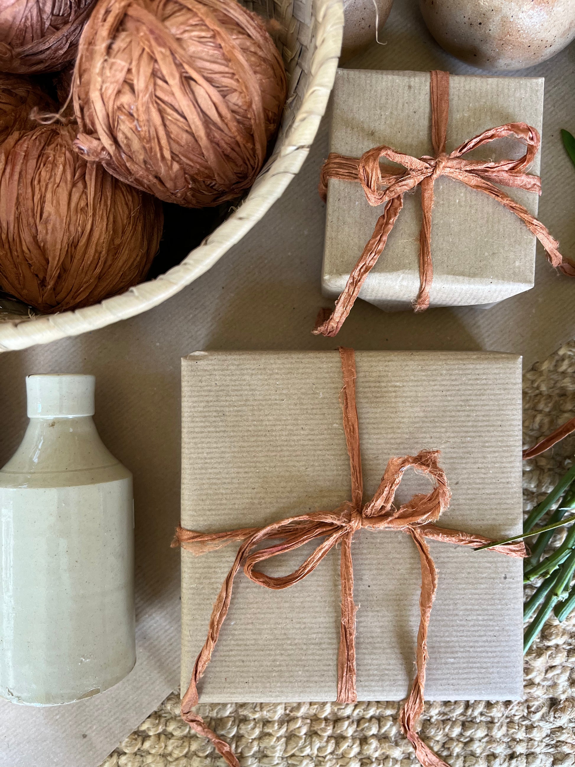 Our ribbons are made from recycled silk saris in Northern India. The saris are dyed, cut into strips, and then stitched together (and sometimes tied), to form one continuous length. They make for beautiful gift wrapping, flower arranging, weddings, or anything you can think of that is in need of a bow! The edges of the ribbon are raw, and due to the nature of the silk coming from lots of different garments, the colours can slightly vary within each ball. But for us this only adds to the story. For a wider finish, you can also iron the silk flat.