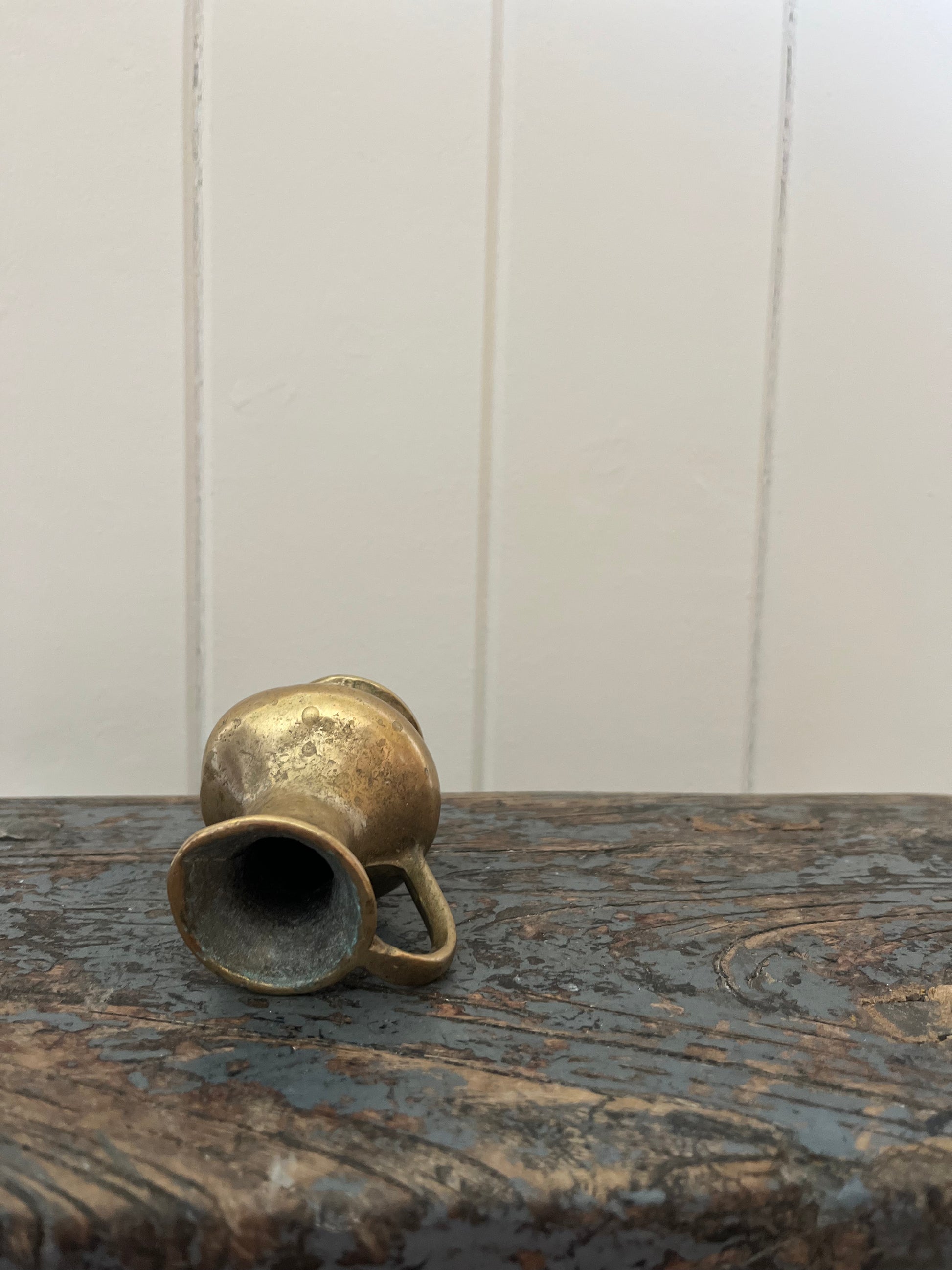 Small little brass jug measuring approx 7cm high, adorable decorative item, or for a very tiny floral display. Lovely vintage condition.